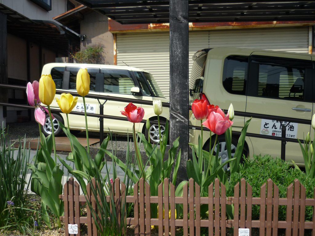 元気に咲いて、利用者さまをお迎えしてます。