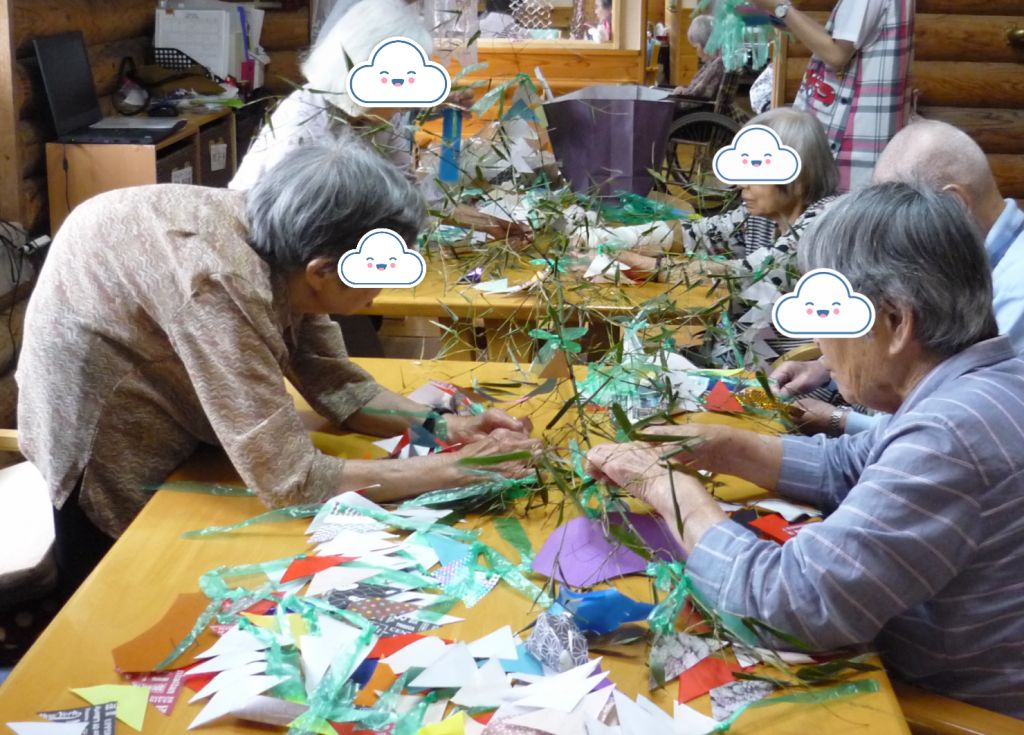 とんぼ池でもみんなで笹に飾り付け(⌒∇⌒)