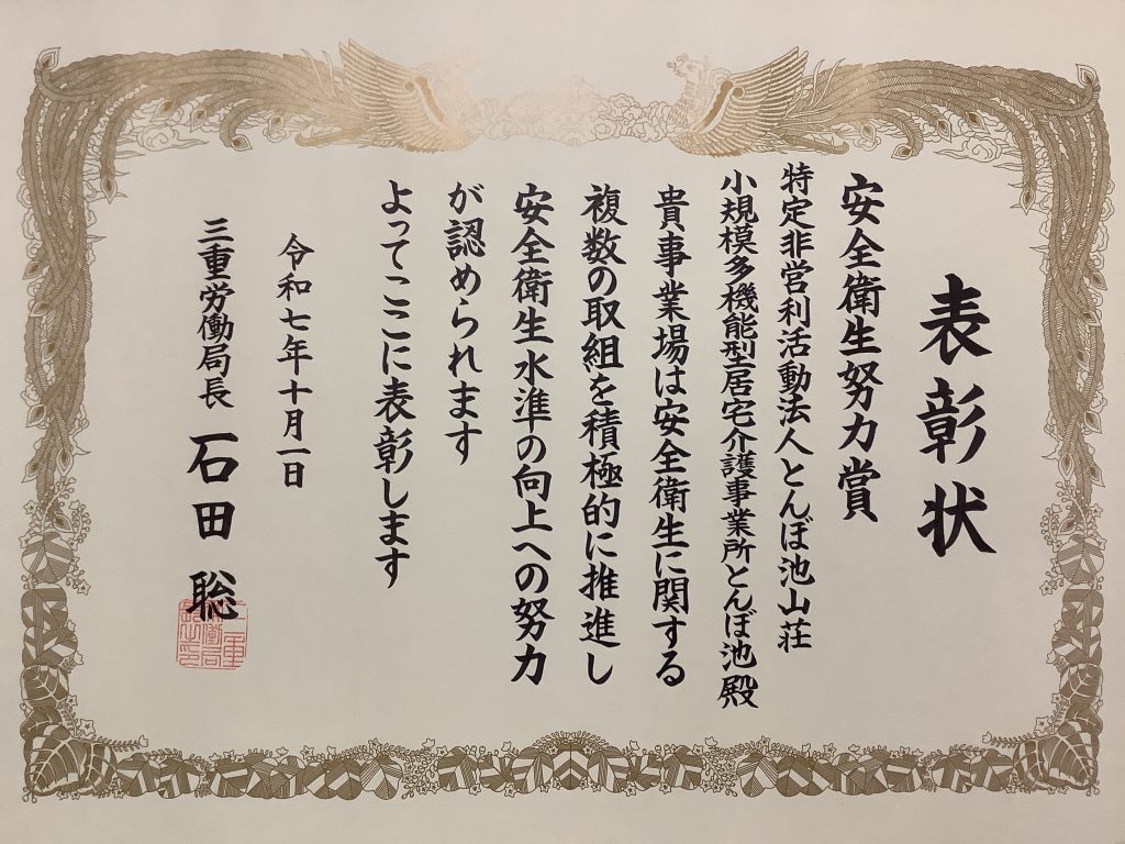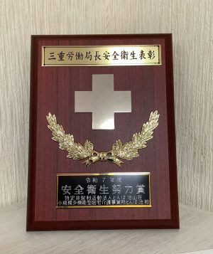 この度、「三重県労働局長安全衛生努力賞」を受賞