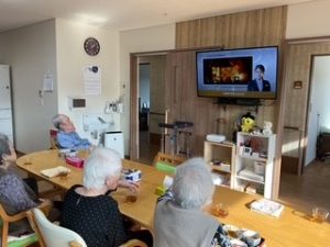 室内に戻り、皆で防火映像を鑑賞
